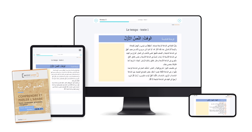 - Des exercices interactifs, des vidéos et un manuel d'arabe pour chaque niveau.